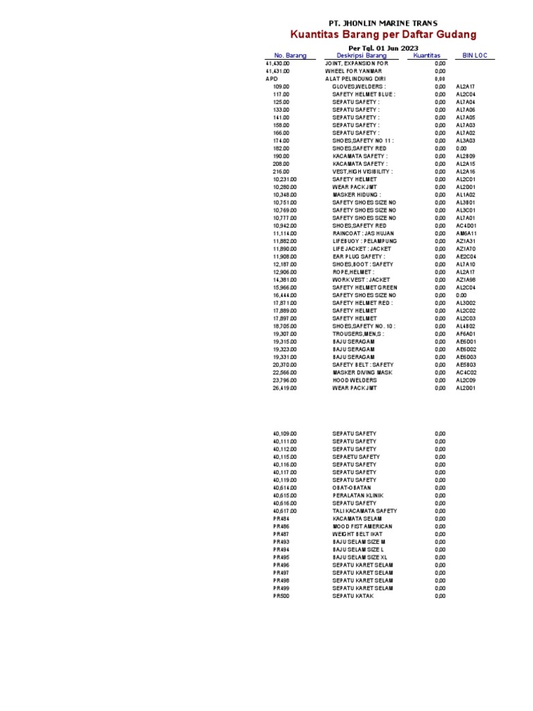 No. Barang Deskripsi Barang Kuantitas BIN LOC