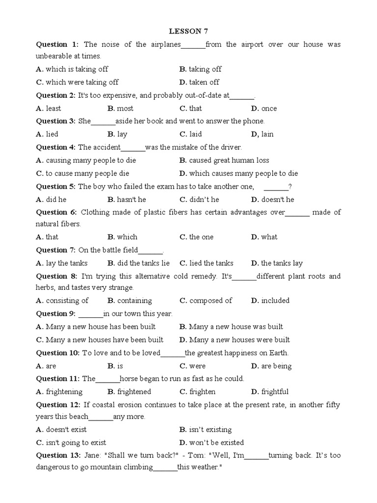 Question 14: My new glasses cost me______the last pair 1 bought last month.