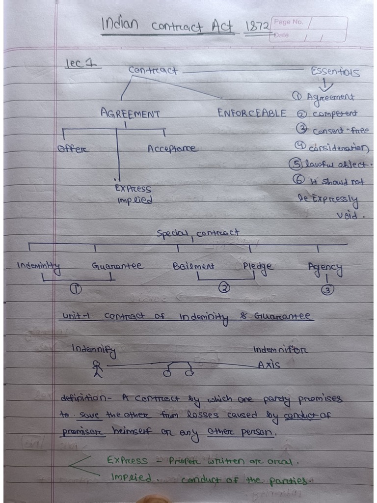 Indian Contract Act 1872 EBCL CS Executive Hand Written Notes