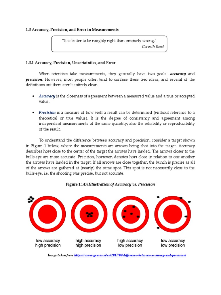 3 Accuracy, Precision, and Error in Measurements