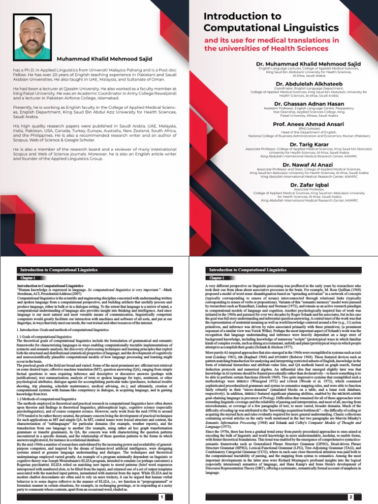 Divided into eight chapters, each of the expert contributors focus on a different aspect of the interaction of computing and linguistics looking either at computational resources: the Internet, software for fieldwork and teaching linguistics, Unix utilities, or at computational developments: the availability of electronic texts, new methodologies in natural language processing, the development of the CELLAR computing environment for linguistic analysis.The computer science and linguistics combined major provides students with extensive background in the formal structures of natural (human) languages, as well as methods and applications of linguistic and psycholinguistic analyses of human language data. This is combined with an emphasis in computer science on artificial intelligence and natural language processing techniques. The major provides excellent preparation for work or more advanced degrees focusing on computational linguistics, natural language processing, speech perception, spoken language interfaces, artificial intelligence, and a wide array of related fields. The major in Linguistics & Computer Science allows students to explore human (natural) language from a variety of perspectives, through courses focusing on meaning and linguistic structure at a variety of levels (sounds, words, sentences), with a range of electives in other areas. Students also learn about the organization, design, and construction of hardware and software systems for computing and discover how such systems can be programmed to process and analyze large amounts of natural language data.This prepares students for a variety of career opportunities in Computational Linguistics and Natural Language Processing, including improving or developing new software in areas such as grammar checkers, machine translation, and information retrieval. It also provides an excellent background for students who wish to pursue graduate studies in these areas.By having Computers in Linguistics Applied Linguistics Group suggested thatStudent will achieve: