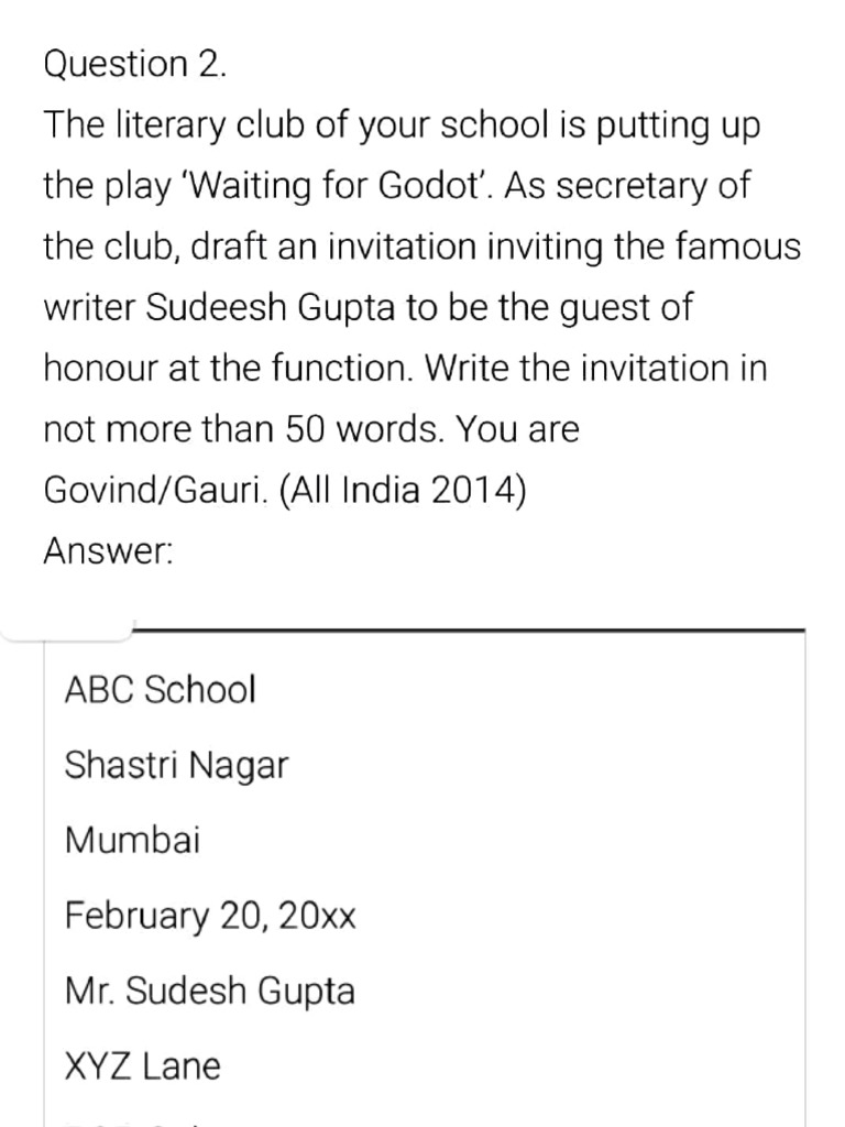 Invitation for Literary Club Event: Guides on drafting an invitation for a literary club event with structured content for inviting a guest of honour.