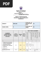 Table of Specification (TOS) –SCIENCE GRADE 5 2ND QUARTER