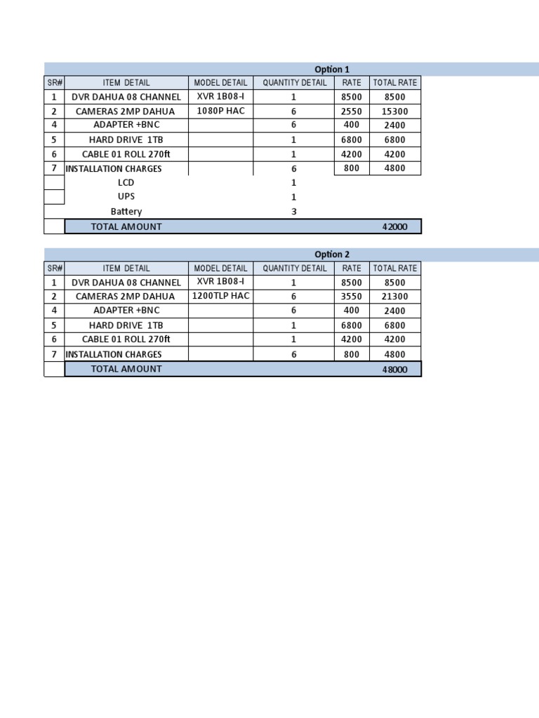 SR# ITEM DETAIL MODEL DETAIL QUANTITY DETAIL RATE TOTAL RATE