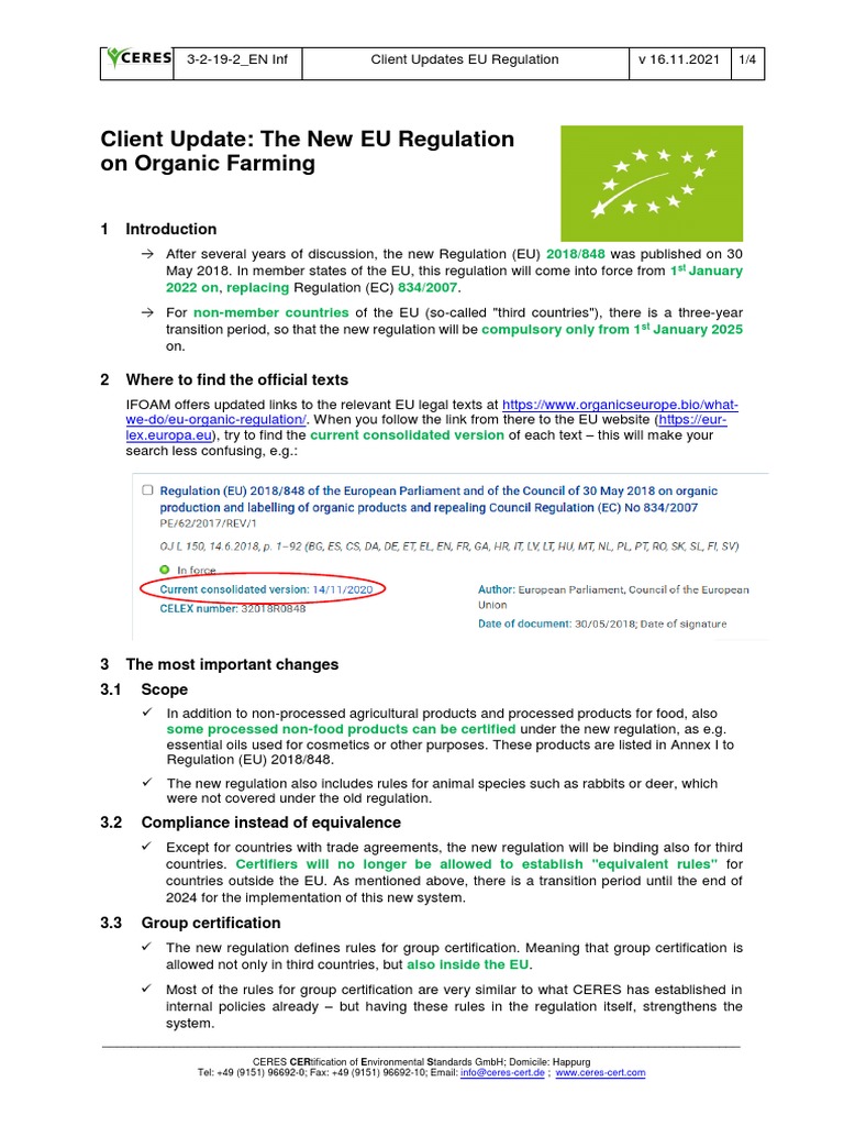 → After several years of discussion, the new Regulation (EU) 2018/848 was published on 30