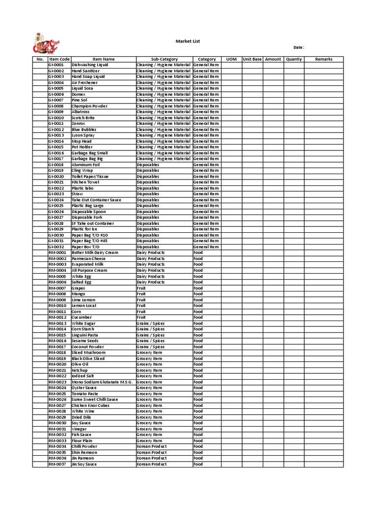 No. Item Code Item Name Sub-Category Category UOM Unit Base Amount Quantiy Remarks