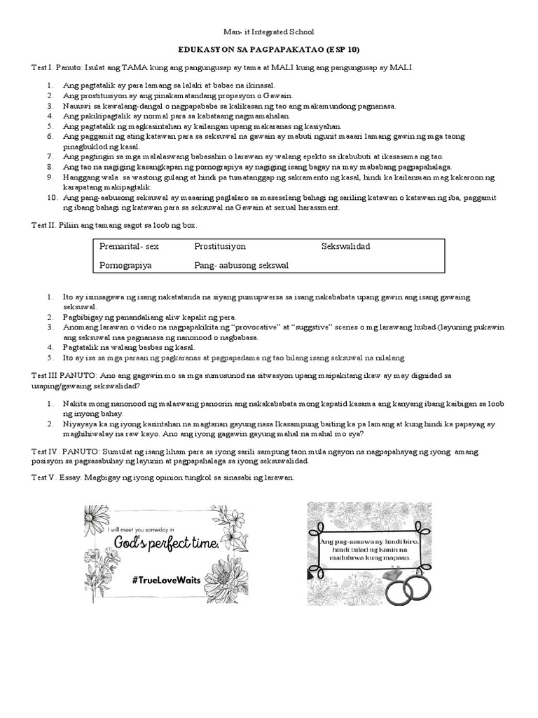 EDUKASYON SA PAGPAPAKATAO (ESP 10)