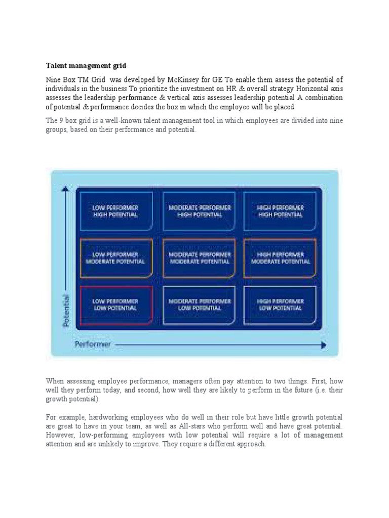 Nine Box TM Grid was developed by McKinsey for GE To enable them assess the potential of