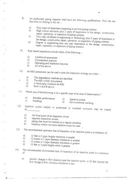 ‘An authorised piping inspector shall have the following qualifications. Pick the one