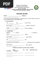 MANUEL S. ENVERGA UNIVERSITY Document Title: Student Personnel Record