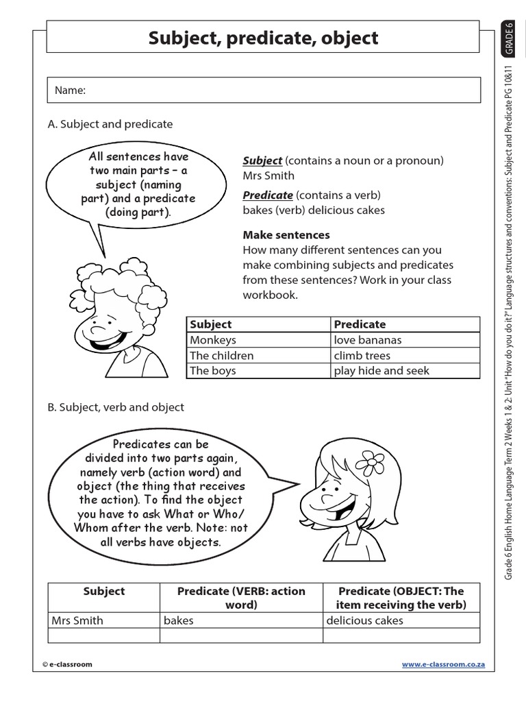 Grade 6 English Home Language Term 2 Weeks 1 & 2: Unit “How do you do it?” Language structures and conventions: Subject and Predicate PG 10&11