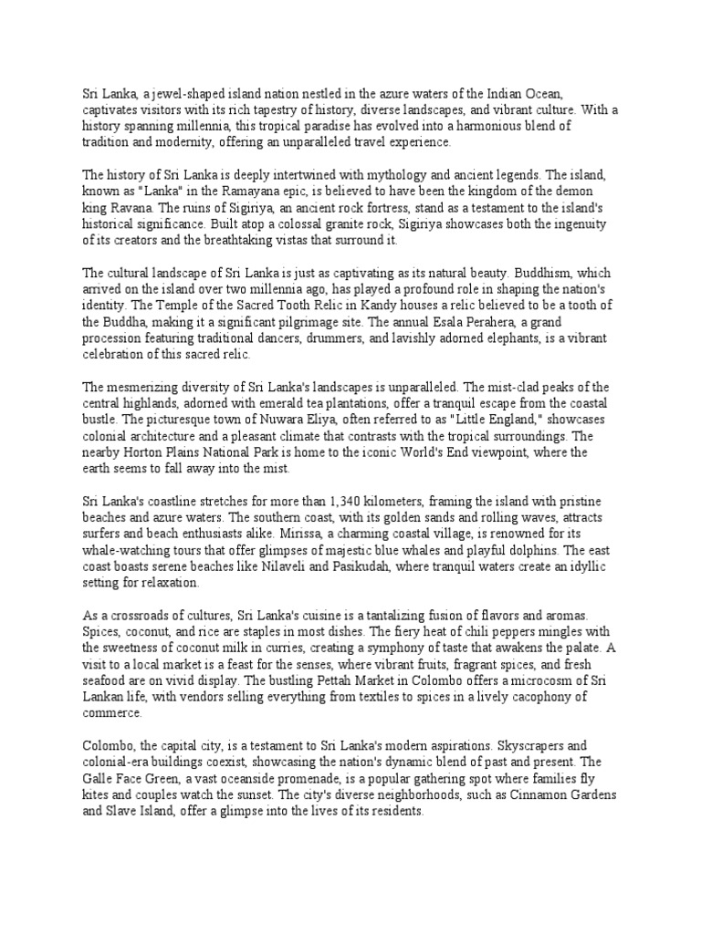 Sri Lanka, a jewel-shaped island nation nestled in the azure waters of the Indian Ocean,