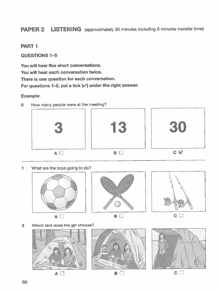 PAPER 2 LISTENING approximately 30 minutes including 8 minutes transfer time)