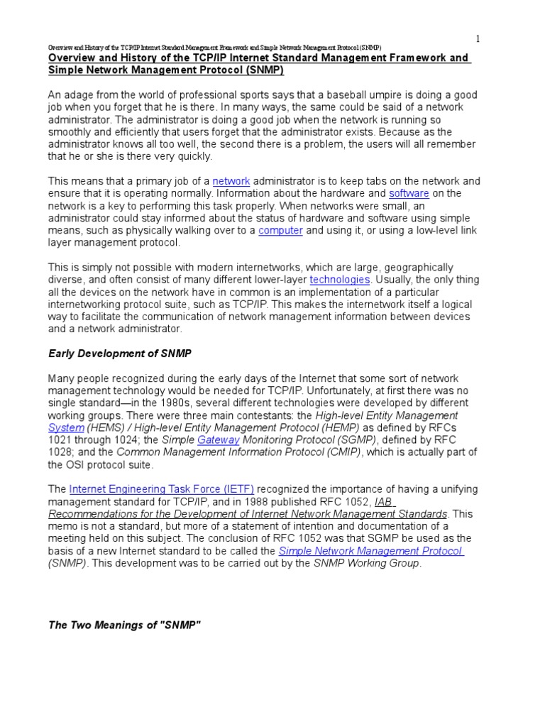 Overview and History of the TCP/IP Internet Standard Management Framework and Simple Network Management Protocol (SNMP)