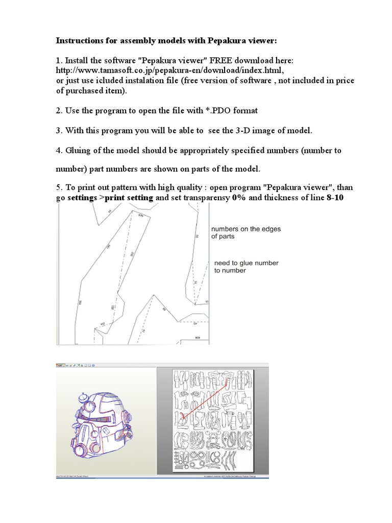 Instructions for assembly models with Pepakura viewer: