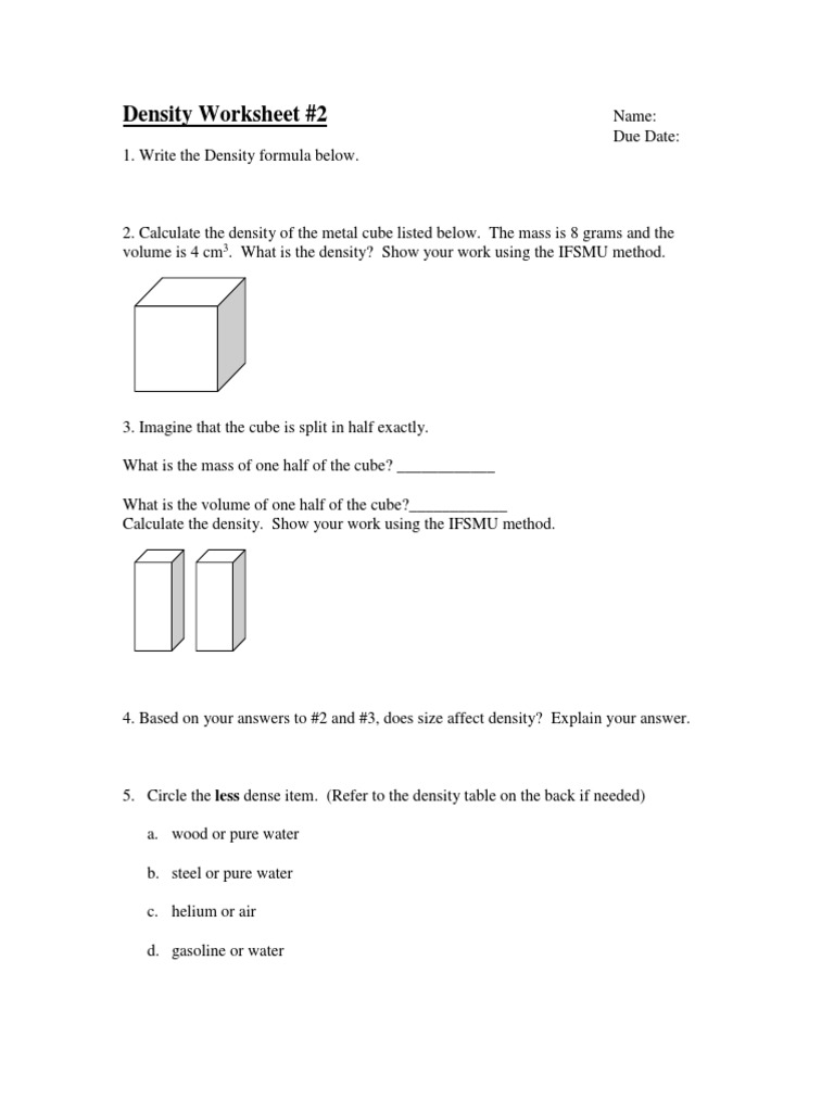 Density Worksheet #2 Name: