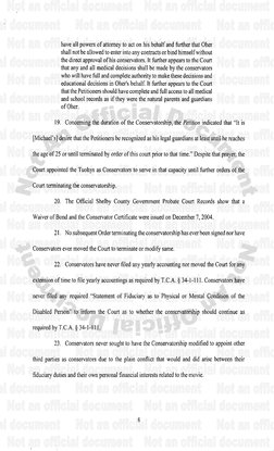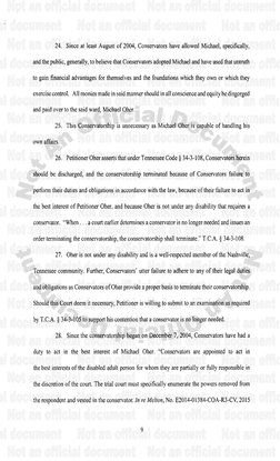 on behalf of the Tuchys, Michael, and his mother, Denise Oher, by Ms, Branan as the attomey ofrecord for all four petitioners, included a request that the Conservators have total control over
