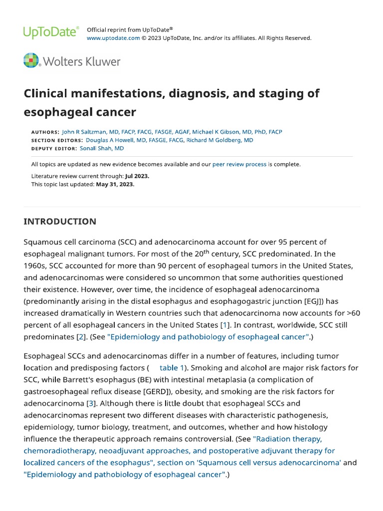 elsewhere. (See "Epidemiology and pathobiology of esophageal cancer".)