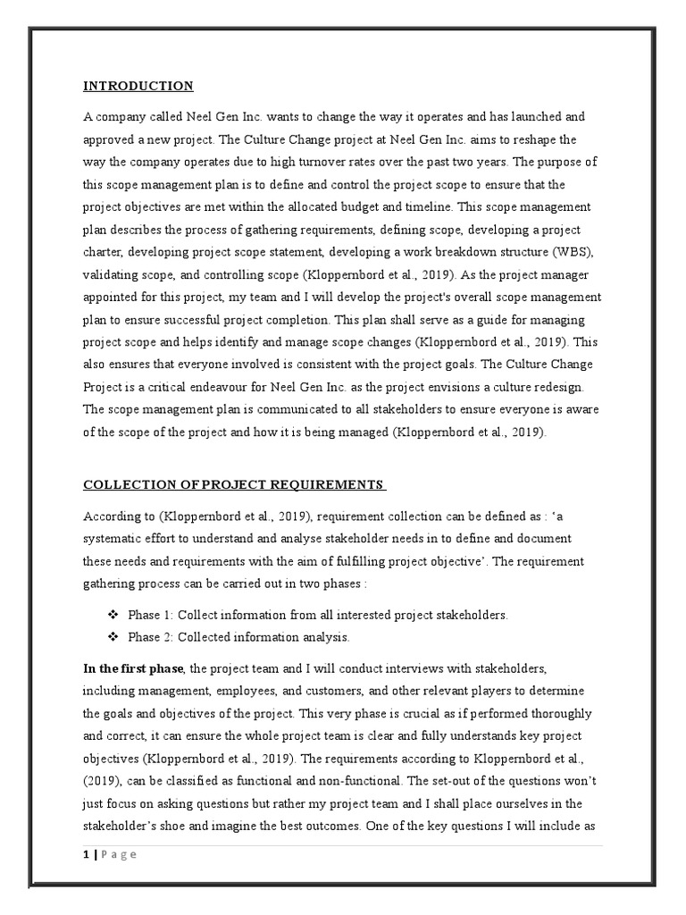 ensure its success. The Scope Management Plan developed for the Culture Change project at