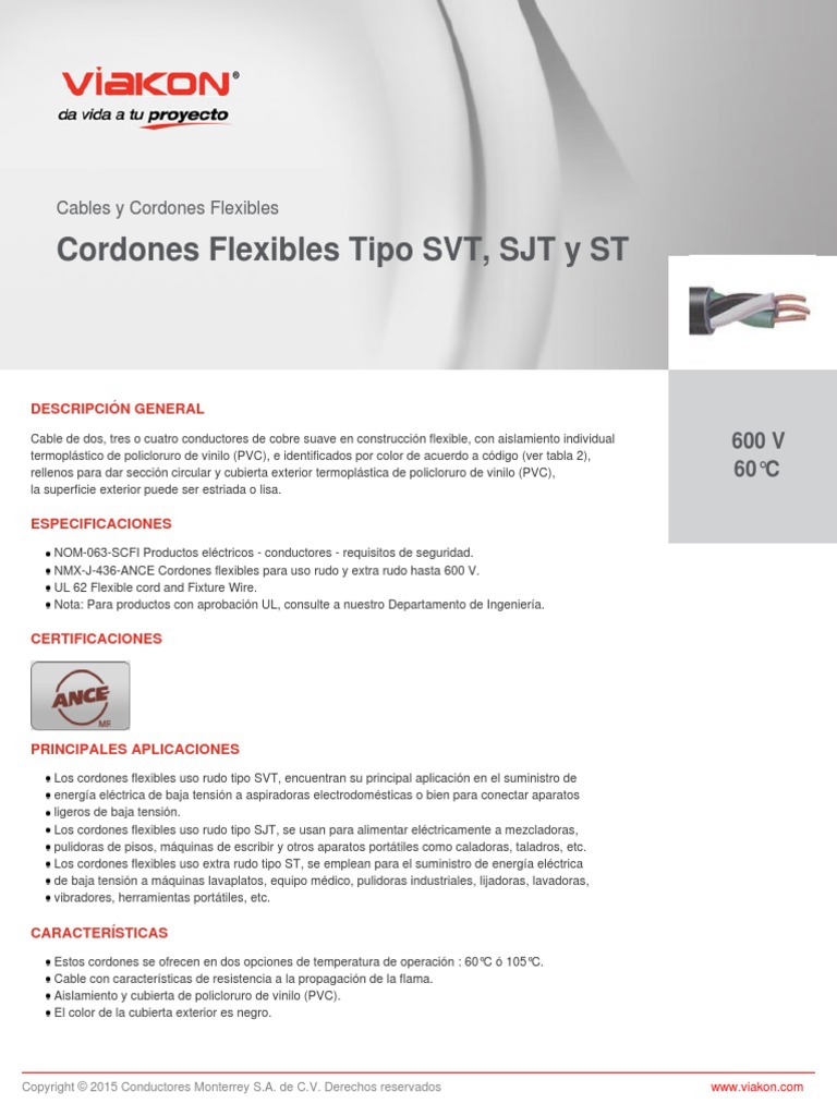 Los cordones flexibles uso rudo tipo SVT, encuentran su principal aplicación en el suministro de