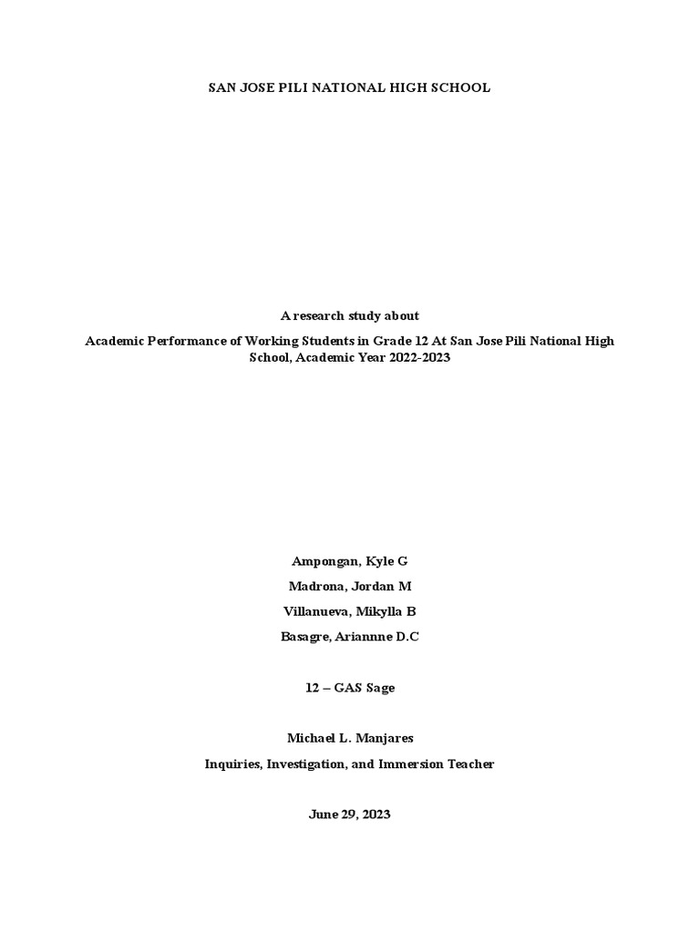 Academic Performance of Working Students in Grade 12 At San Jose Pili National High