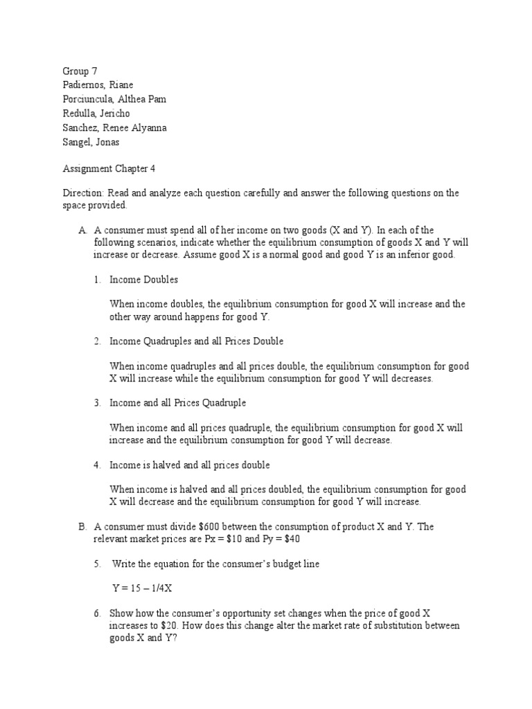 increase or decrease. Assume good X is a normal good and good Y is an inferior good.