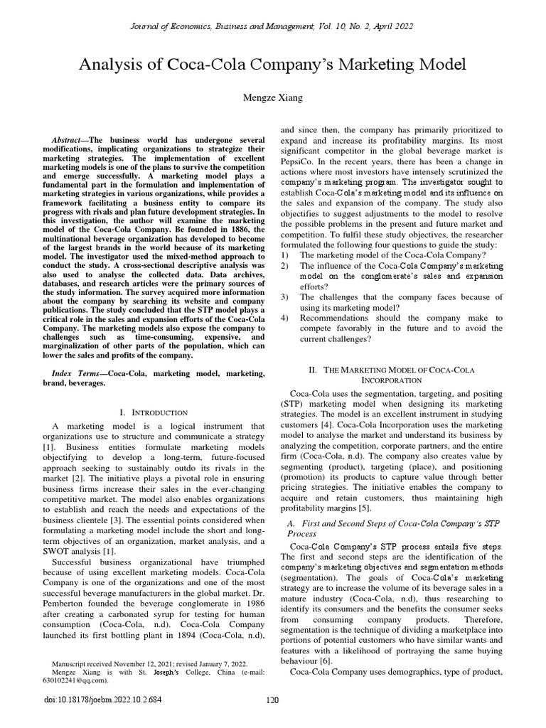 Index Terms—Coca-Cola, marketing model, marketing, II. THE MARKETING MODEL OF COCA-COLA