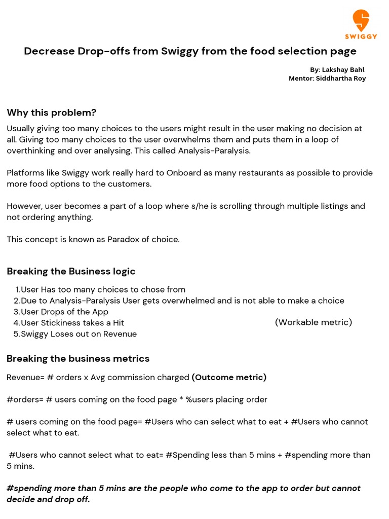 With Such Staggering Number of users active on Swiggy, the App needs to solve the
