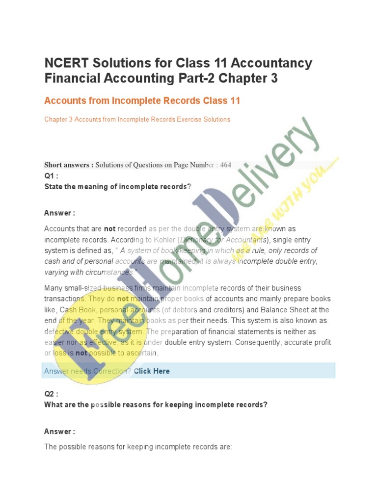 Class 11 Accountancy: Incomplete Records Solutions