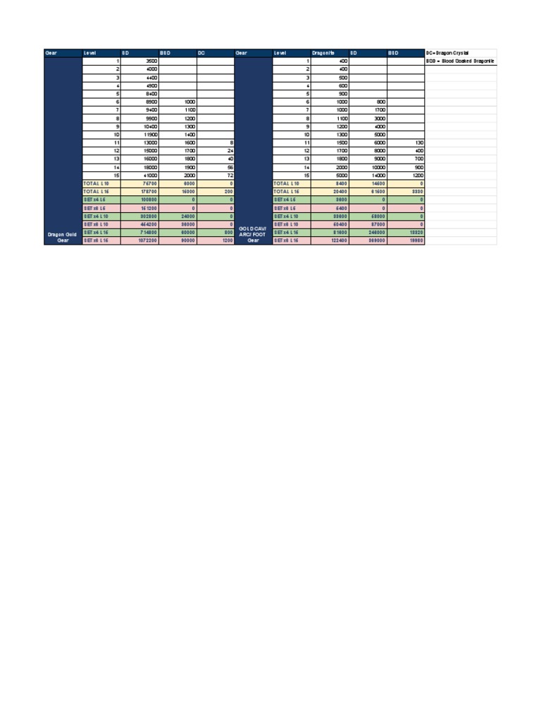 Dragon Gold SETx4 L15 714800 60000 800 ARC/ FOOT SETx4 L15 81600 246000 13320