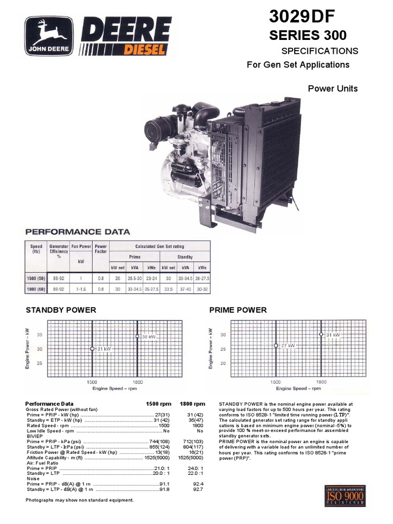 Performance Data 1500 rpm 1800 rpm STANDBY POWER is the nominal engine power available at