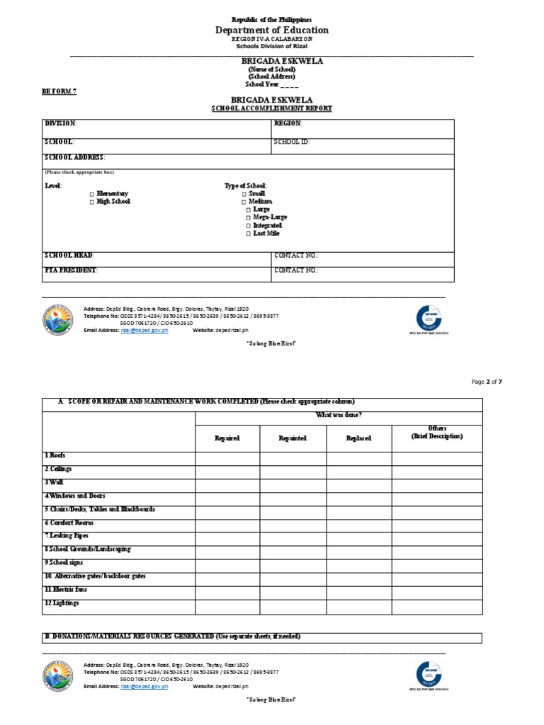 Address: DepEd Bldg., Cabrera Road, Brgy. Dolores, Taytay, Rizal 1920