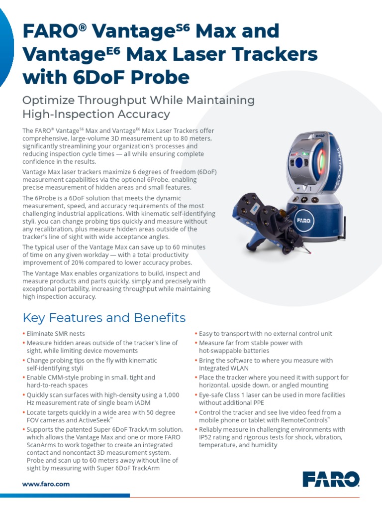 The FARO® VantageS6 Max and VantageE6 Max Laser Trackers offer