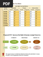 Income slab existing Up to Rs 160,000 Rs 160,001 to Rs 300,000 Rs 300,001 to Rs 500,000 Above Rs 500,001 Rate of income tax NIL 10% 20% 30% Income slab proposed by new revised DTC Up to Rs 200,000 Rs 200,001 to Rs 500,000 Rs 500,001 to Rs 1,000,000 Above Rs 1,000,001