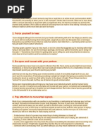 You may know your spouse very, very well. But you cant make assumptions, especially not about what your spouse likes and dislikes when it comes to sexuality, sensuality, and romance. Dont be afraid to discuss your preferences. Ask what gives your spouse the most pleasure, too. Research shows that the couples who enjoy the best sexual relationships have developed their own methods of telling each other what they like. And this includes both verbal and non-verbal communication. Its normal to feel like youre taking an emotional risk here. To find out how to navigate this pitfall, consult the premium eBook version of How to Save your Marriage (page 56).