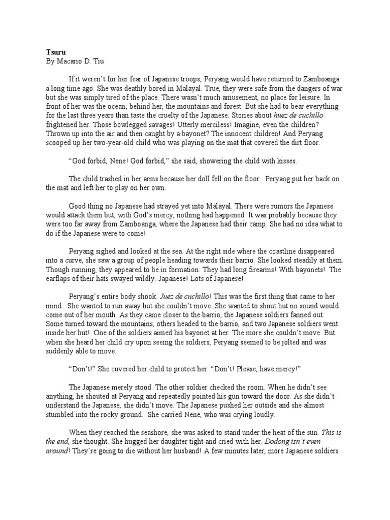 captured and killed by the barrio patrol. Carrying Nene in her arms, Peryang went to Pawa’s