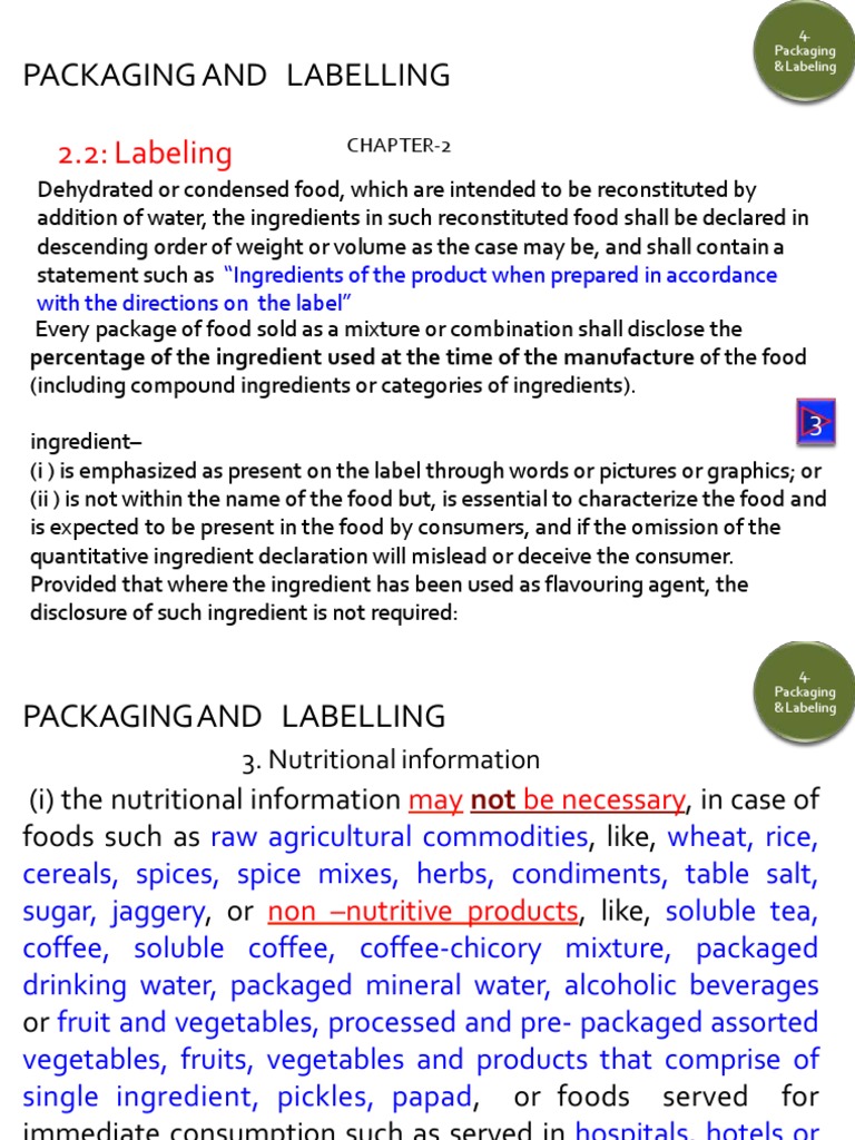 addition of water, the ingredients in such reconstituted food shall be declared in