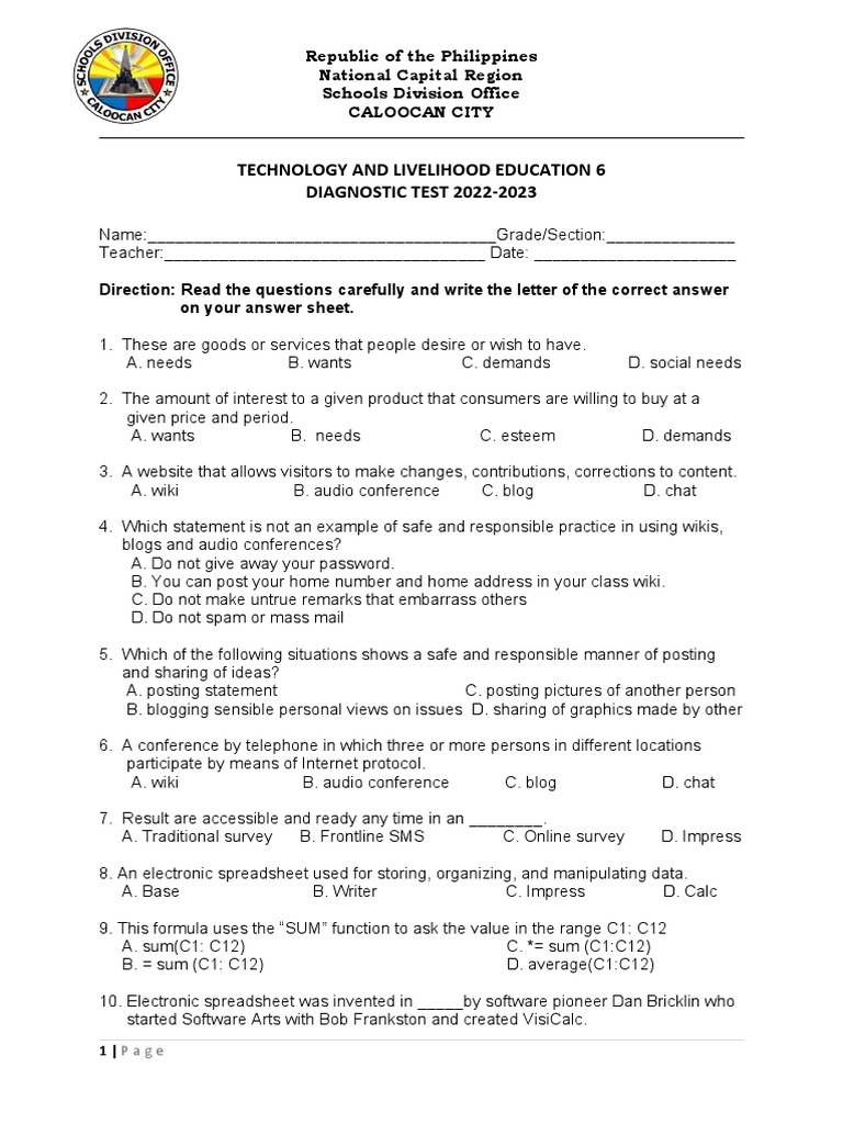 TECHNOLOGY AND LIVELIHOOD EDUCATION 6