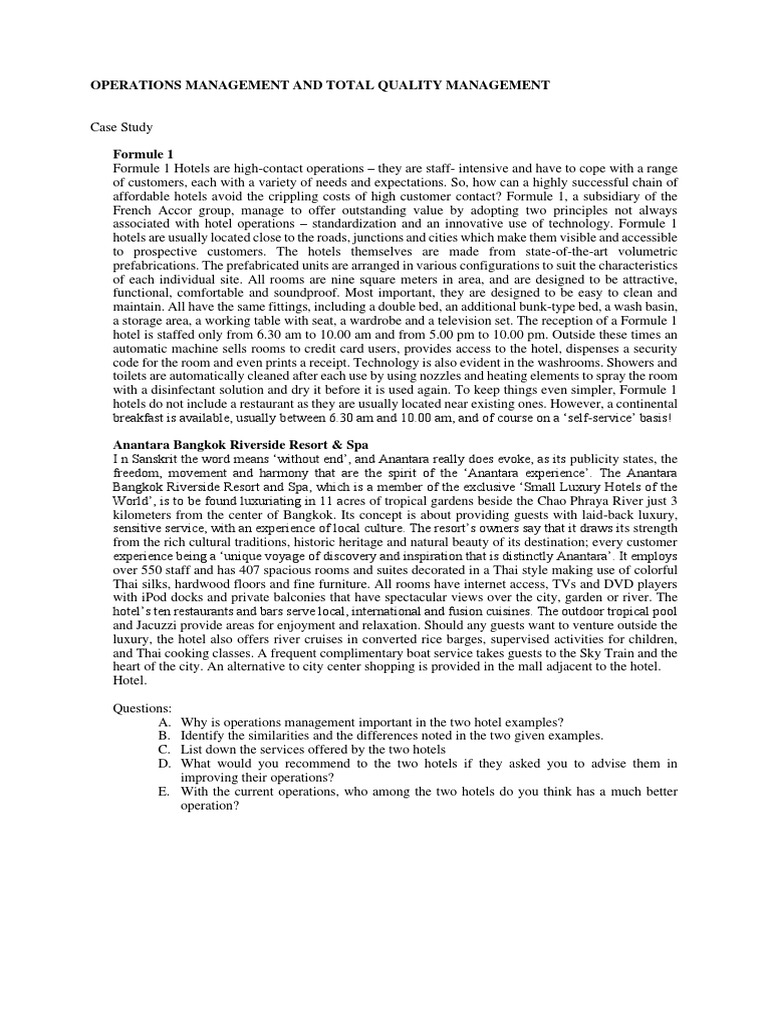 OPERATIONS MANAGEMENT AND TOTAL QUALITY MANAGEMENT