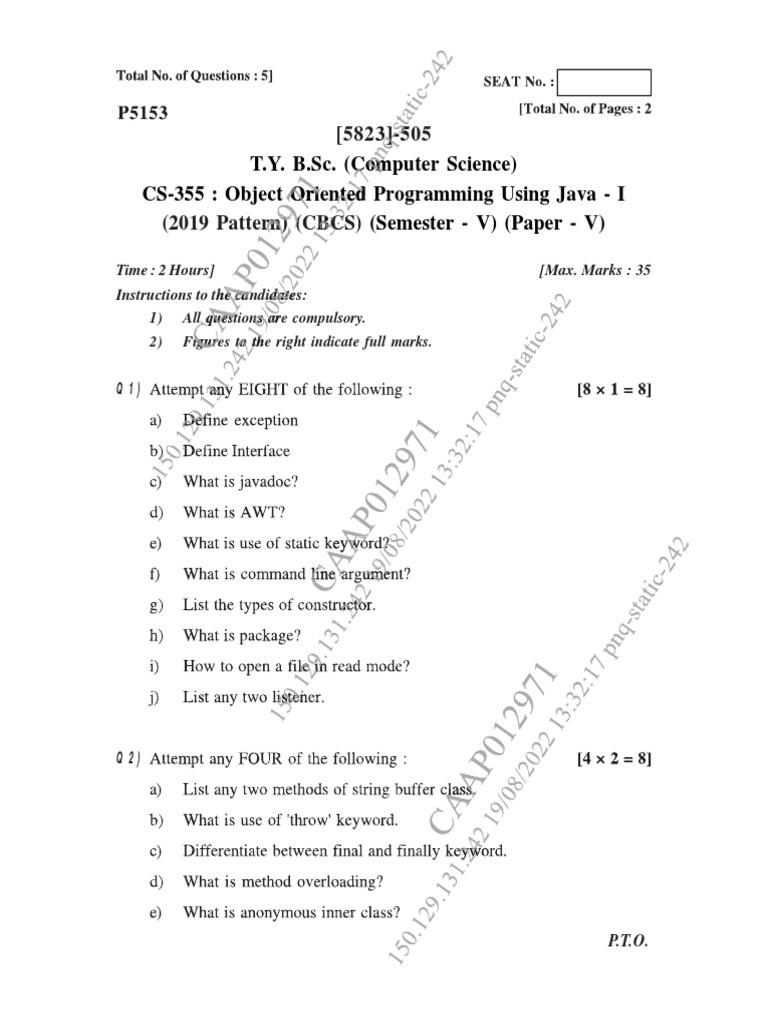 (2019 Pattern) (CBCS) (Semester - V) (Paper - V)