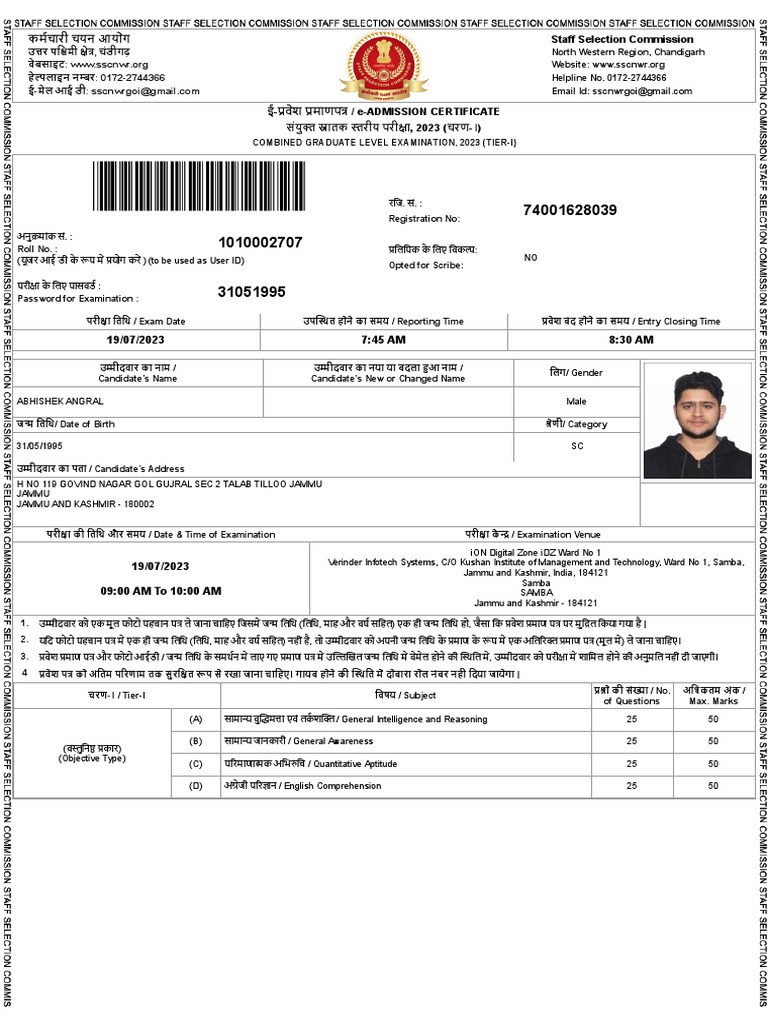 अभ्यर्थियों को सलाह दी जाती है कि किसी भी संदेह या स्पष्टीकरण के मामले में वे आयोग के संबंधित क्षेत्रीय कार्यालय से व्यक्तिगत रूप से या प्रवेश-पत्र में दर्शाए गए हेल्पलाइन नंबरों के माध्यम