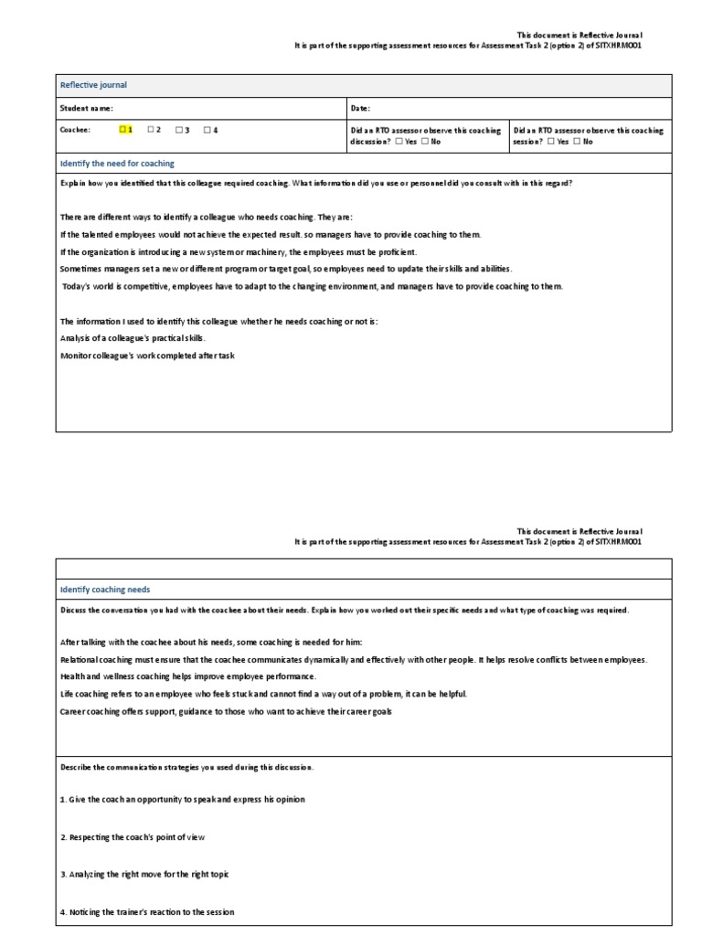 Coachee: ☐1 ☐2 ☐3 ☐4 Did an RTO assessor observe this coaching Did an RTO assessor observe this coaching