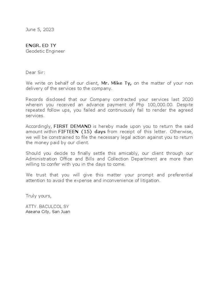 amount within FIFTEEN (15) days from receipt of this letter. Otherwise,