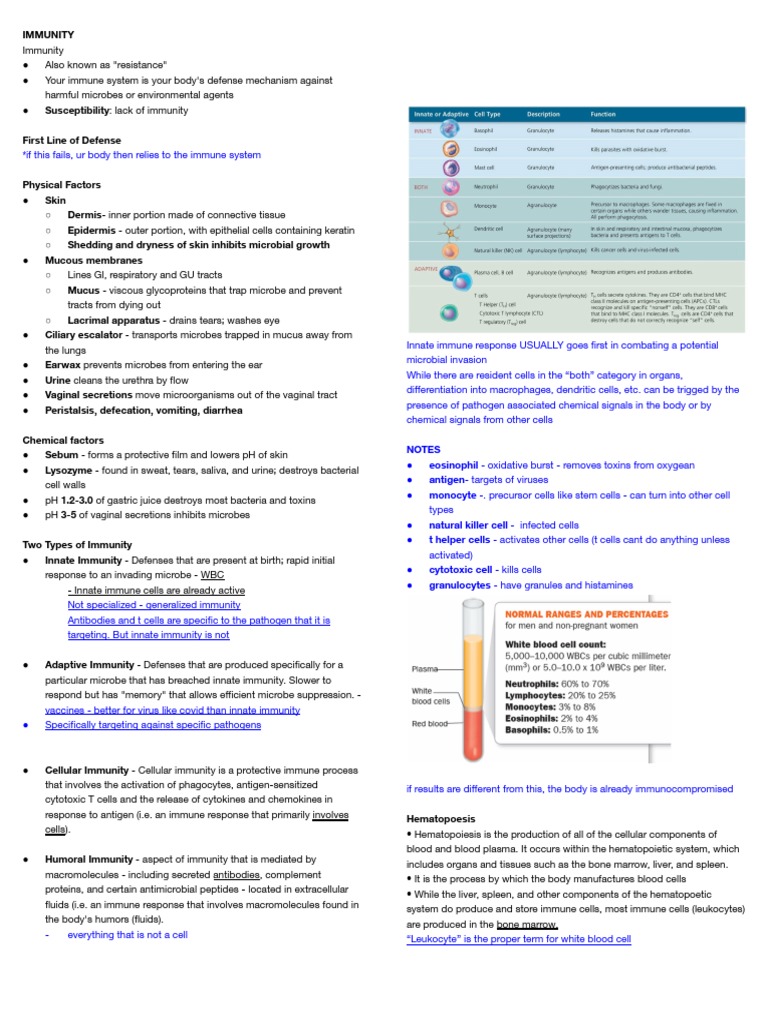 ● pH 1.2-3.0 of gastric juice destroys most bacteria and toxins ● monocyte -. precursor cells like stem cells - can turn into other cell