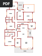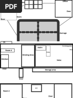 The document outlines a basic floor plan of a building. It includes labeled areas such as a mandir, sitting room/lobby, toilet, kitchen, and entrance. Additionally, there is a reference to stairs leading up.