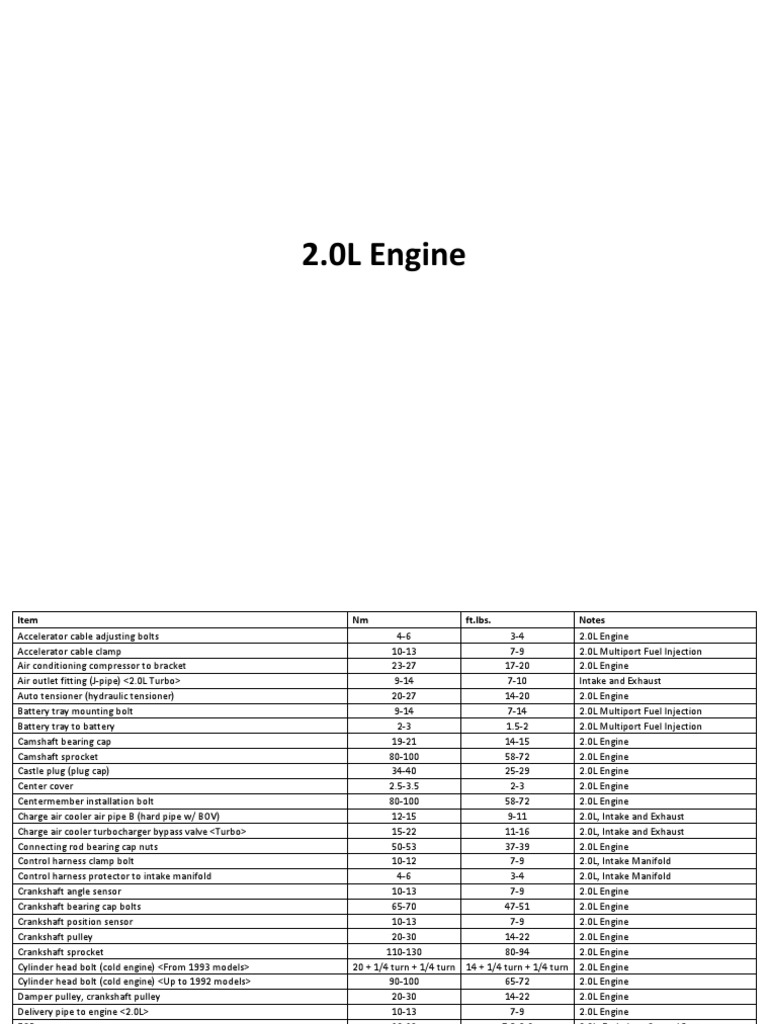 2.0L Engine Torque Specifications Guide