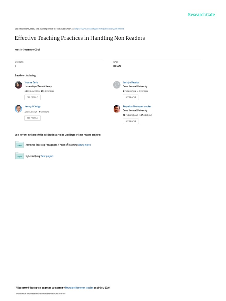 Abstract - The study determined the effective teaching practices in handling nonreaders. This seeks
