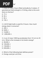 Work, Power and Energy Worksheet