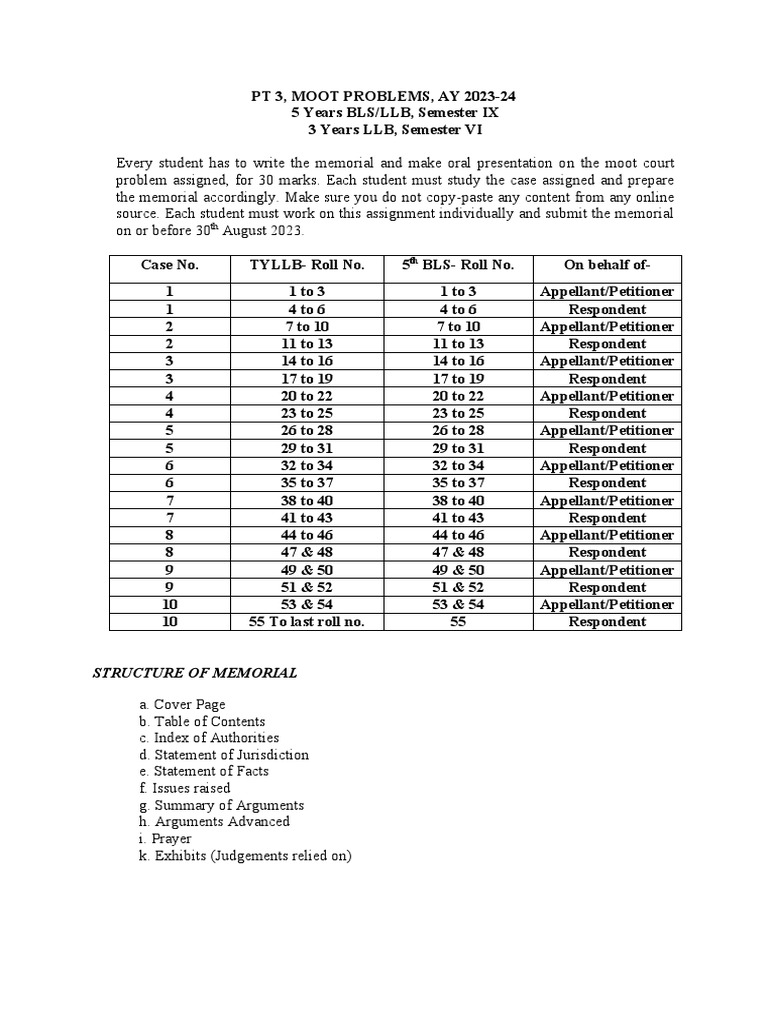 problem assigned, for 30 marks. Each student must study the case assigned and prepare
