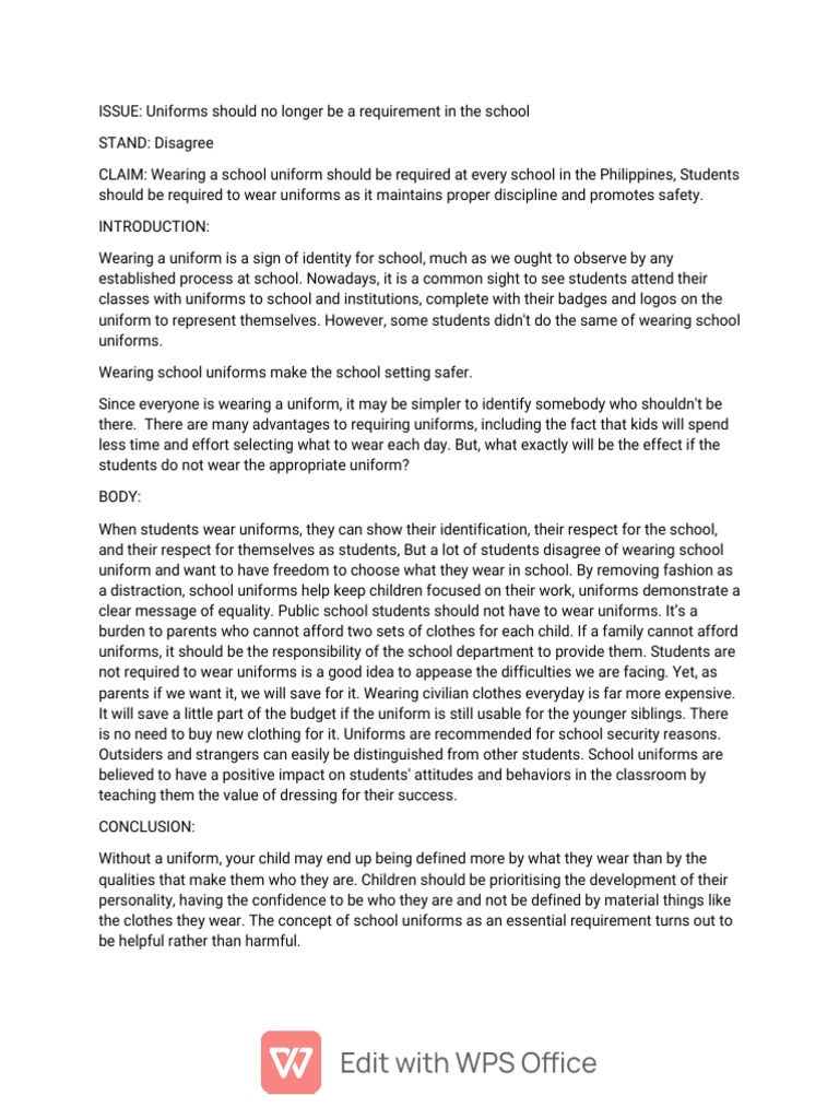CLAIM: Wearing a school uniform should be required at every school in the Philippines, Students